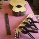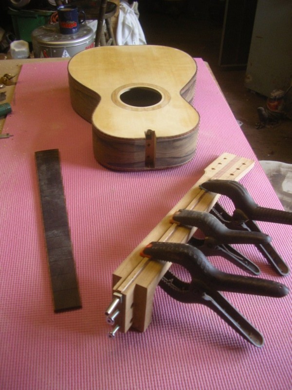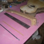 The fillet is glued in place over the rod and spring clips hold it in place while the glue dries. Another advantage of this type of rod is that it can be easily replaced – it just slides out. Of course you would have to take the neck off first…..