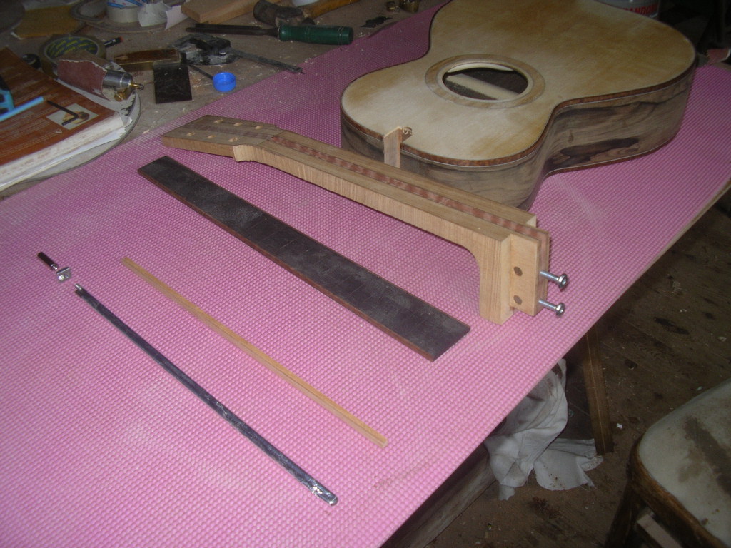 The slot for the truss rod is made with a router cutter with a round bottom to match the rod. The fillet also has a slot cut into it with the same cutter. When the rod is in place this fits neatly around it making it very strong and …if I may say so….. elegant.