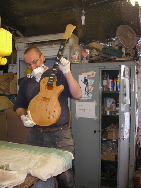 In this case Liberon finishing oil is applied to the finely sanded guitar. What a great job Willem…..nice inlays.