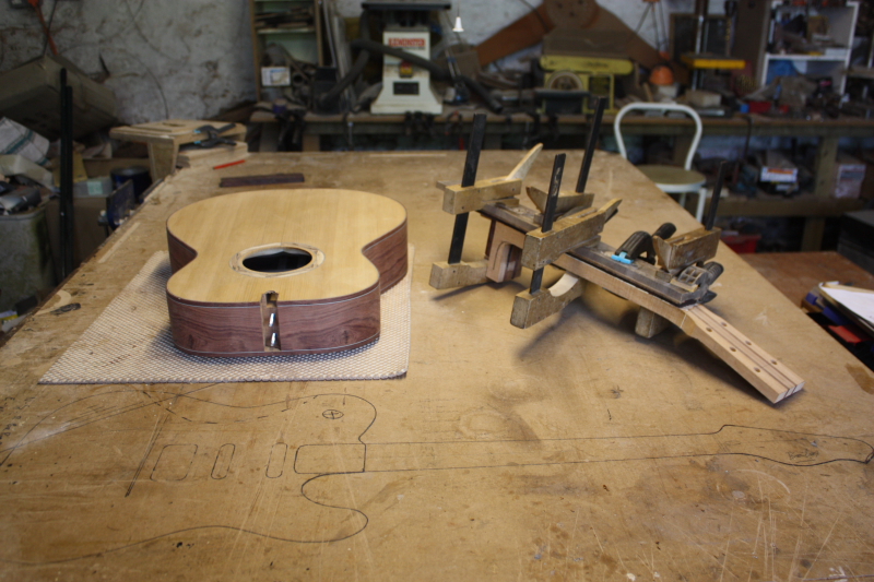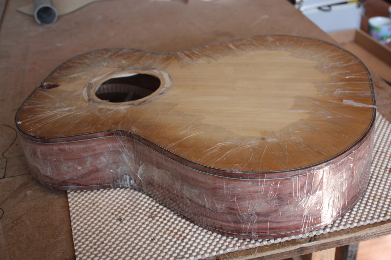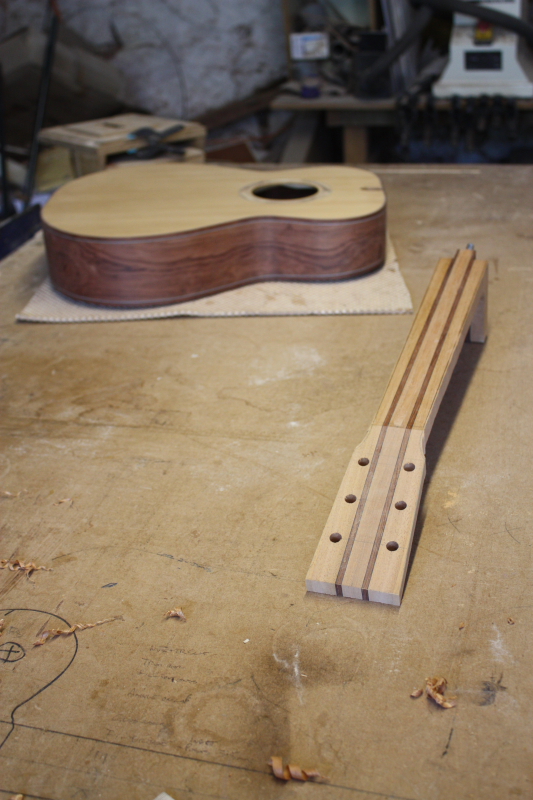 It produces a strong powerful tap tone now the body is together…we’ll have to wait and see what it sounds like with the strings on…