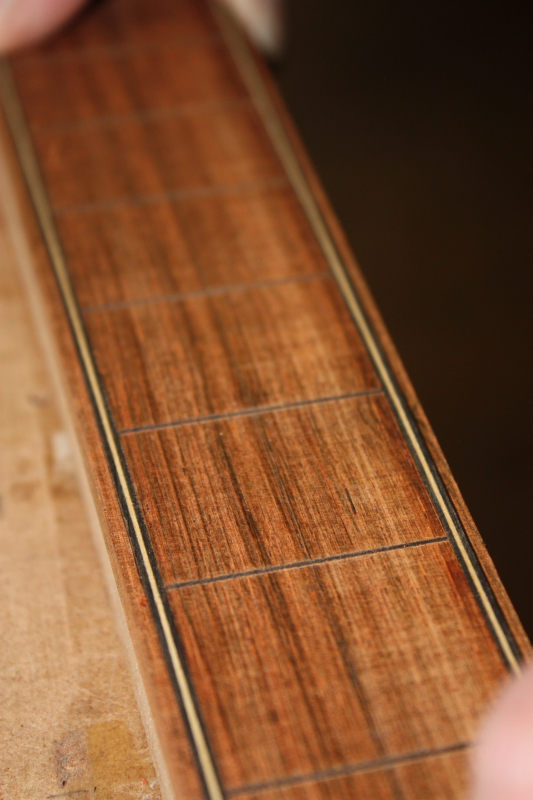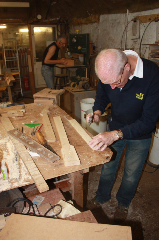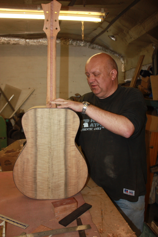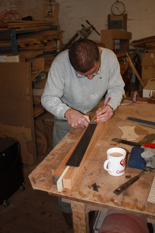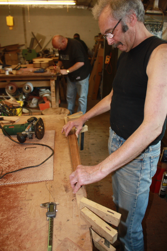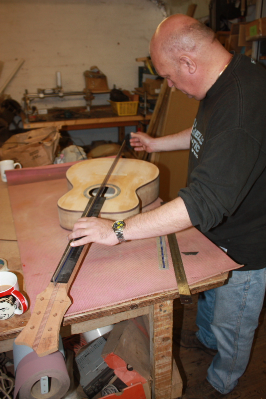 For Dave and Kevin, our new starters, yesterday was all about fixing their designs and choosing wood etc, so today we could get stuck into building. We had also managed to make fret boards which gave us a bit of head start today. An interesting day- 3 different truss rod designs kept me on my toes…Duncan who has already fitted his, joined Nick to continue working on their acoustics.