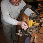 Nick will make his own truss rod which fits into a straight slot but he will use a round bottomed cutter. After he routed his truss rod slot he cut the headstock angle into his neck blank before gluing on the heel block as it is easier to work with a square lump of wood. He was ready to rough out his neck in the afternoon and it will now settle overnight before gluing on the fretboard tomorrow. The rest of the day was spend cutting the channels for the binding around the edges of his body. He managed to get the first pieces glued in place before we packed up for the day and will finish the rest in the morning.