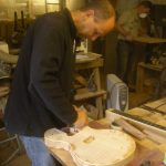 Day 8: LAST DAY! When making guitars, every job you do can make the next one easier or harder, depending on how well it is done. This is crunch time when you find out if all the checking and double checking along the way has paid off. If all is well it should fit together with no problems and only a fret dress and set up are left to do. The frets are levelled before being reshaped, and then sanded and polished. The ‘set up’ is basically three jobs: Set the truss rod, Set the action, and finally the intonation. We worked late again to finish the guitars before heading straight for the pub to celebrate with a much needed and well earned drink. Cheers All!