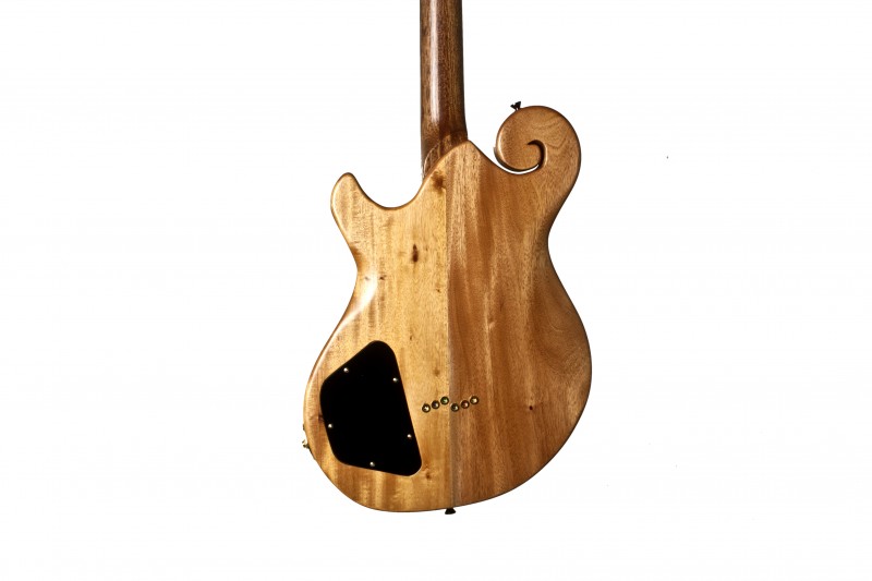 David kindly brought his guitar (and some lovely Scottish wine and whiskey…thanks Dave!) to the Bailey Tent at the live@troon festival last September, causing a bit of a stir among the visitors… he spent several hours talking to tent goers about his design …and the headstock inspired Iona to think up her own split headstock design (BYO 344) on her 21st birthday carve top treat.