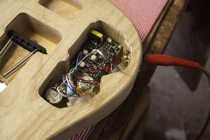 - After fitting the trem I decided to assemble the guitar for a test before final sanding