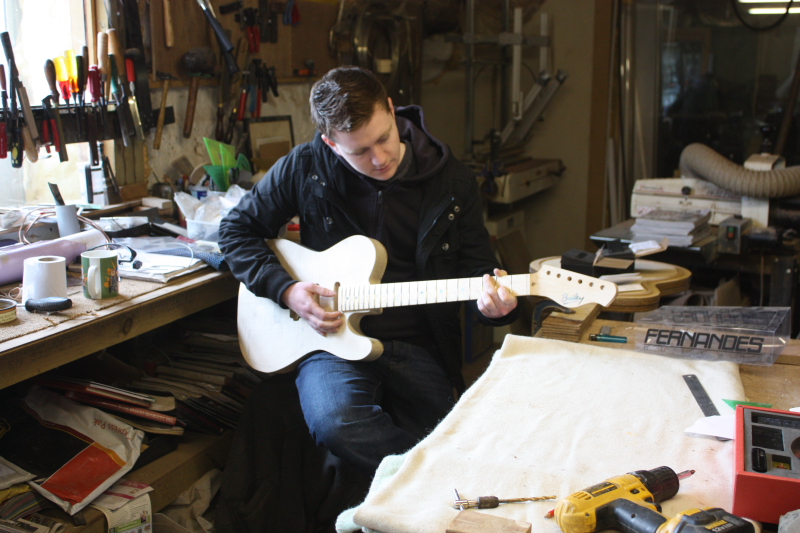 Alec from Skerryvore popped in to see how his custom job was going and finalise a few outstanding issues. The main point was to check the feel of the neck before it gets finished- after this it becomes more difficult. I bolted the neck on so he could try it and he was pleased enough that I didn’t have to make any adjustments to it at all. I checked he was happy with the position of the controls- not a lot of room for choice so we went with the recommended layout. Alec also confirmed the colour of the body which will be wine red.