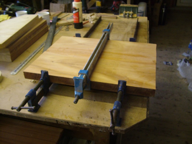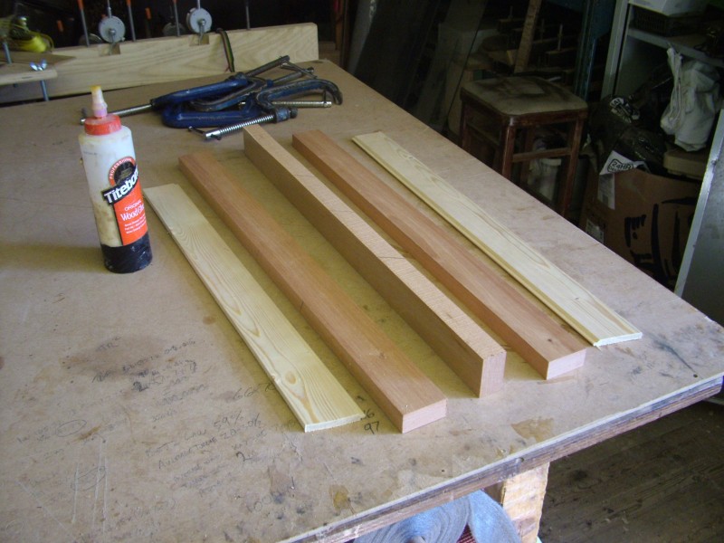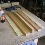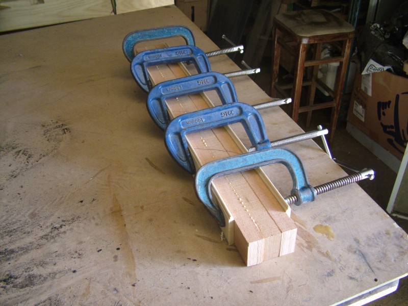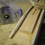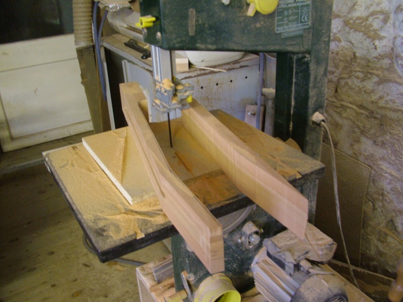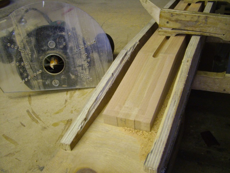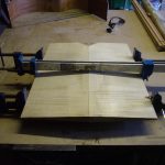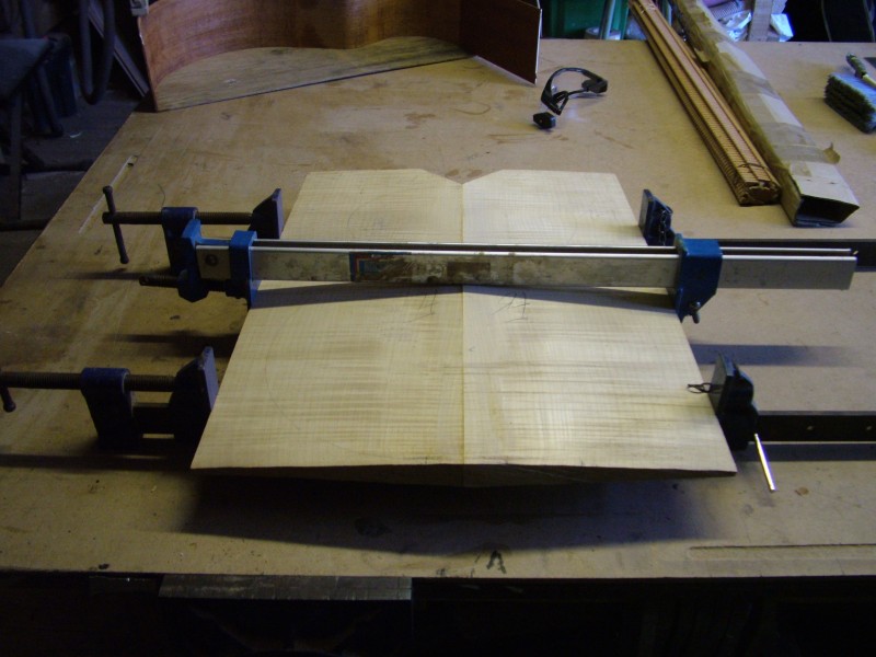 So far I have joined the mahogany and the flamed maple for the back of the body and the cap. The neck 3 laminates are also joined and the neck shape is roughed out.