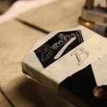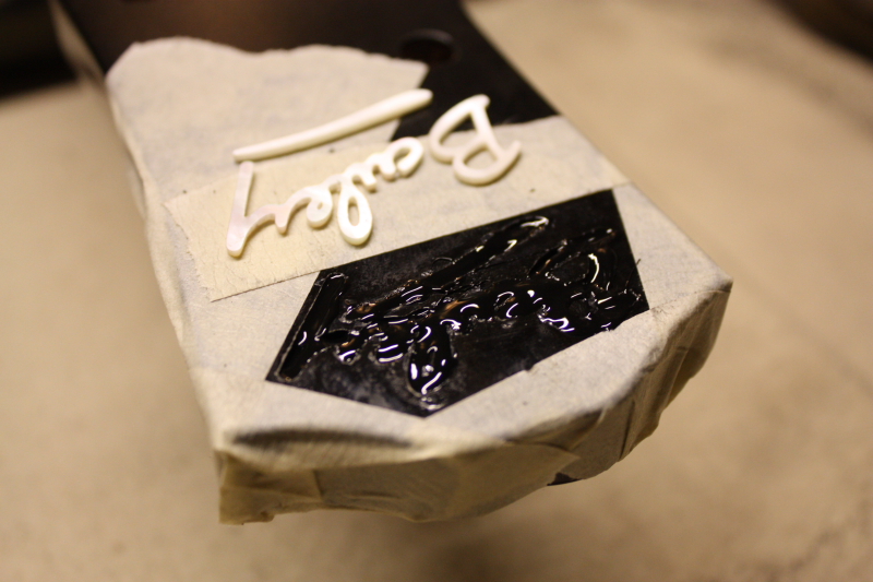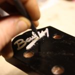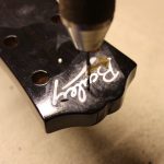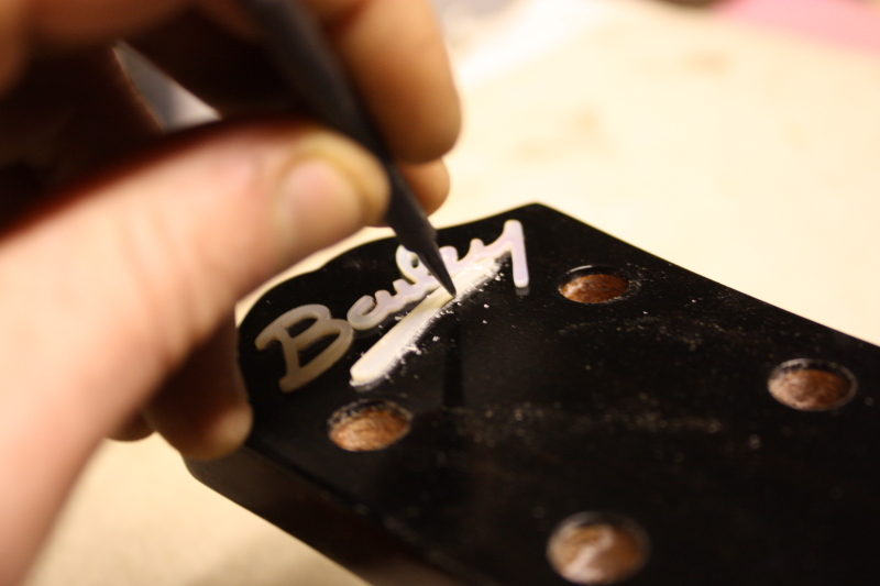 Inlaying is great fun….It’s a very simple process but it does take a bit of practice to get really good. It helps a lot if the surface to be inlaid is black – ebony is great for this. If you use black glue, this fills any gaps and becomes pretty much invisible, the inlay then looks crisp with nice clean edges. Lighter coloured wood like maple are much harder to inlay…..