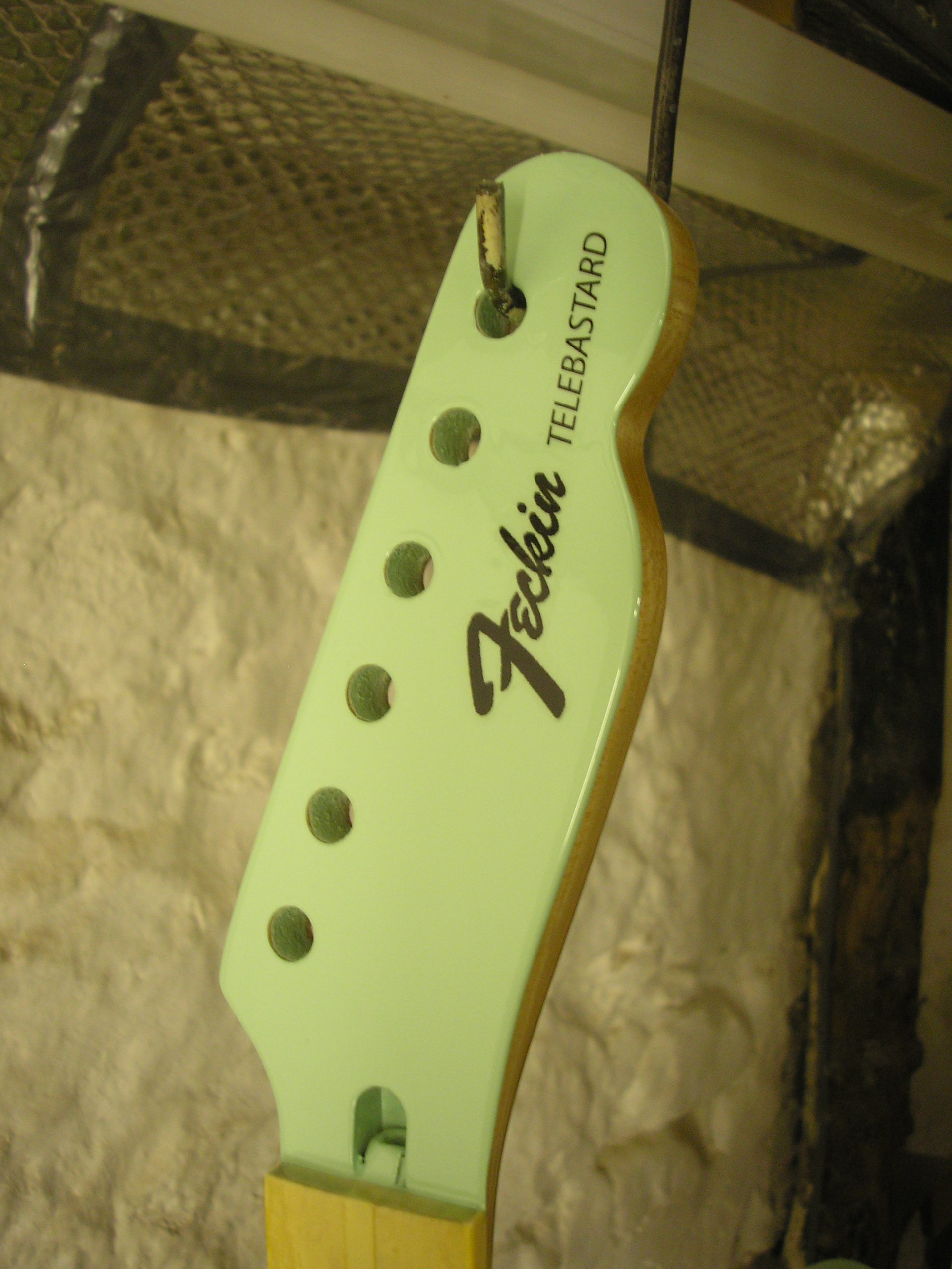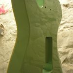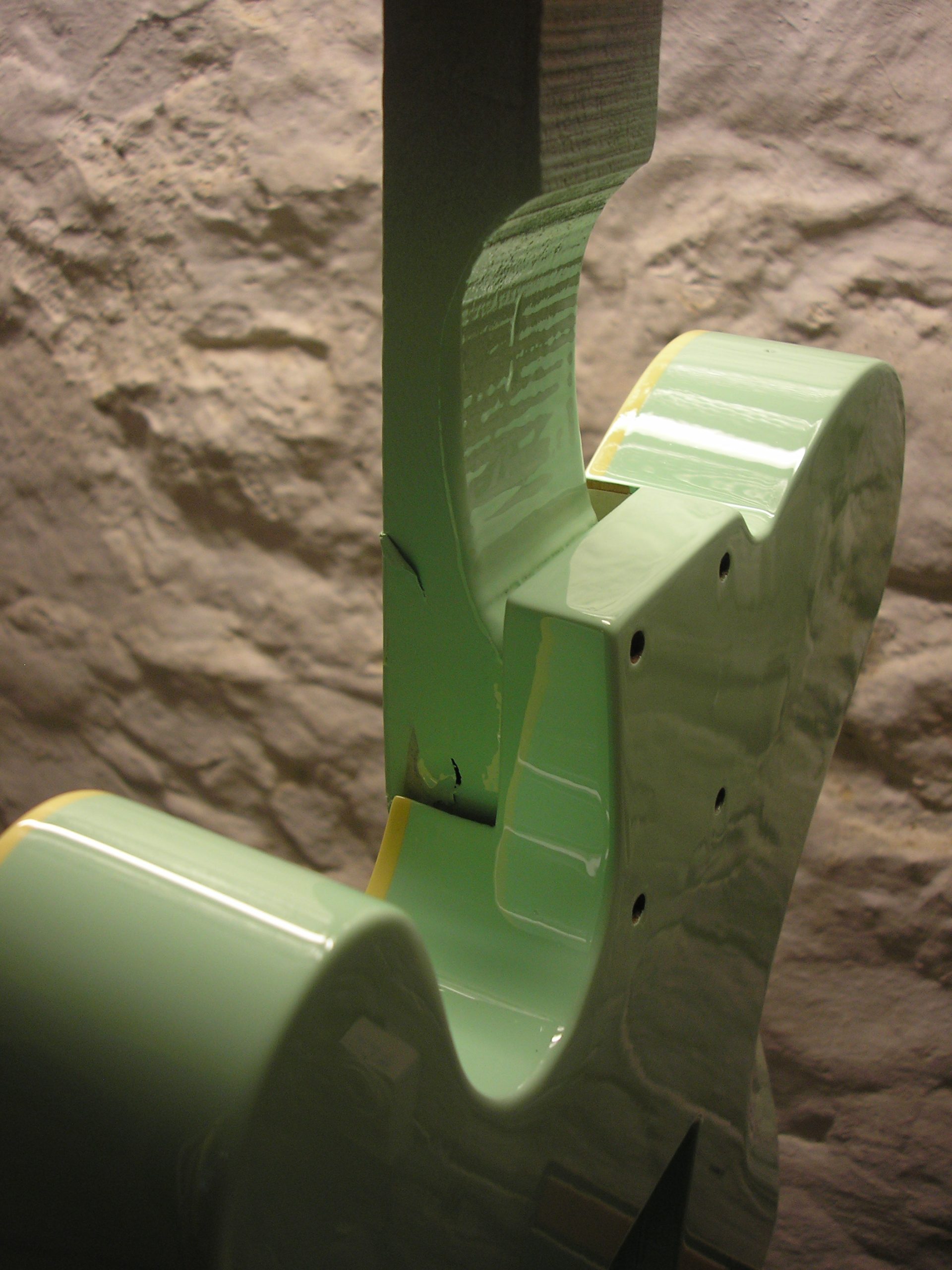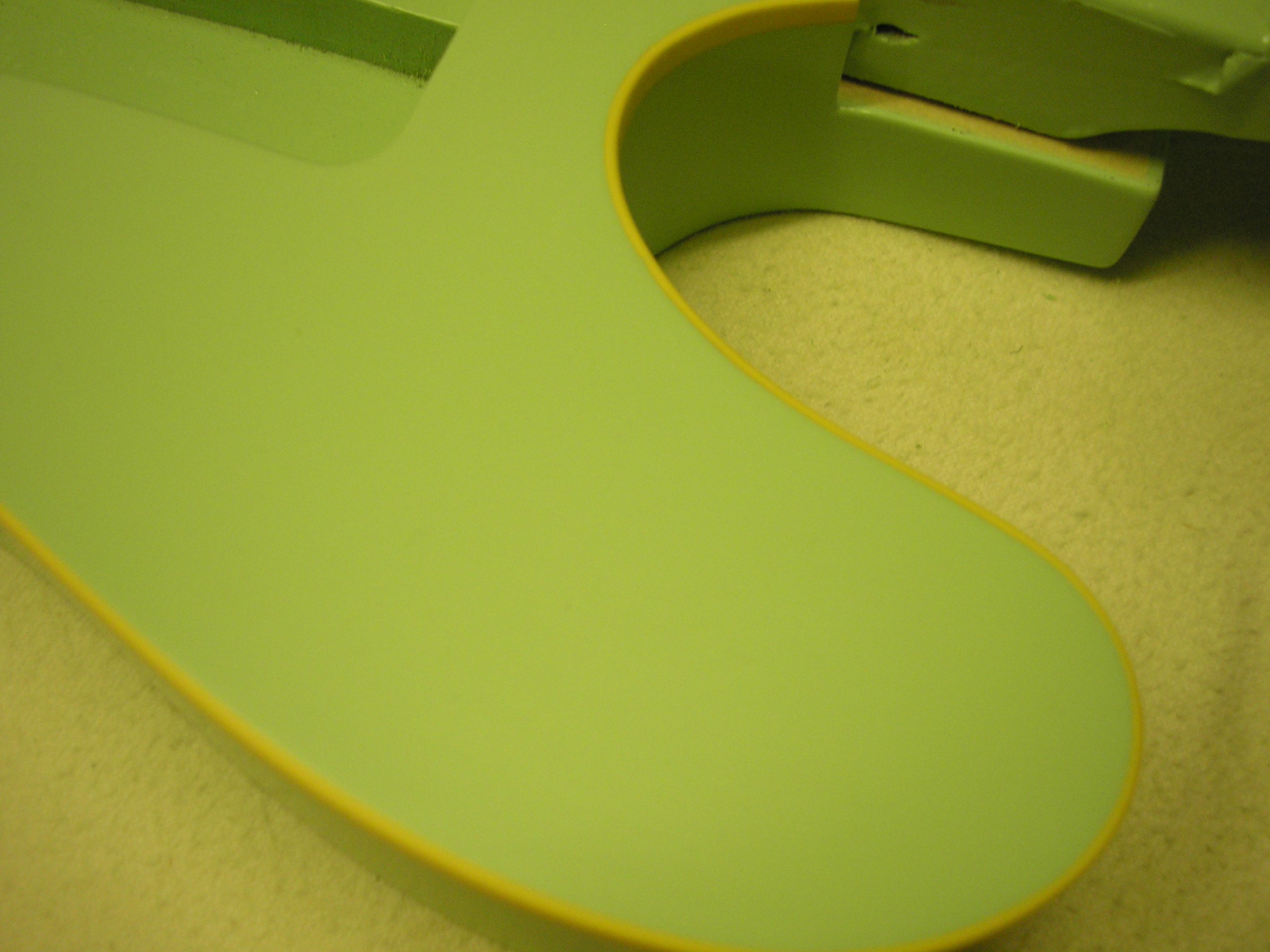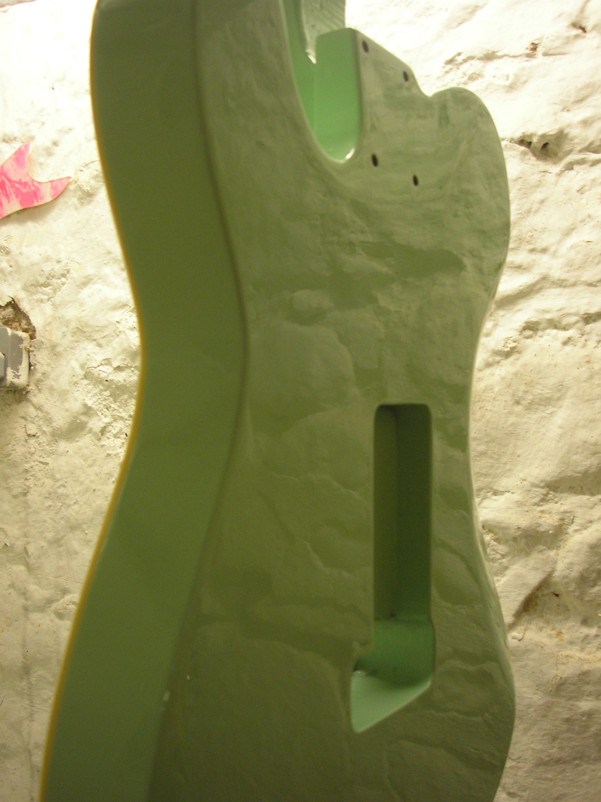 After this I flatted the surface of the colour coat with 400-800g sandpaper, then the guitar body is ready for gloss.